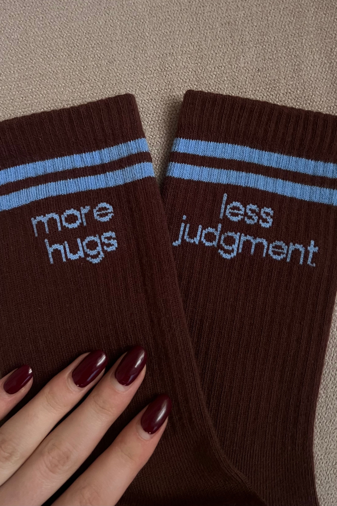 | Tekstas | MORE HUGS\LESS JUDGMENT |